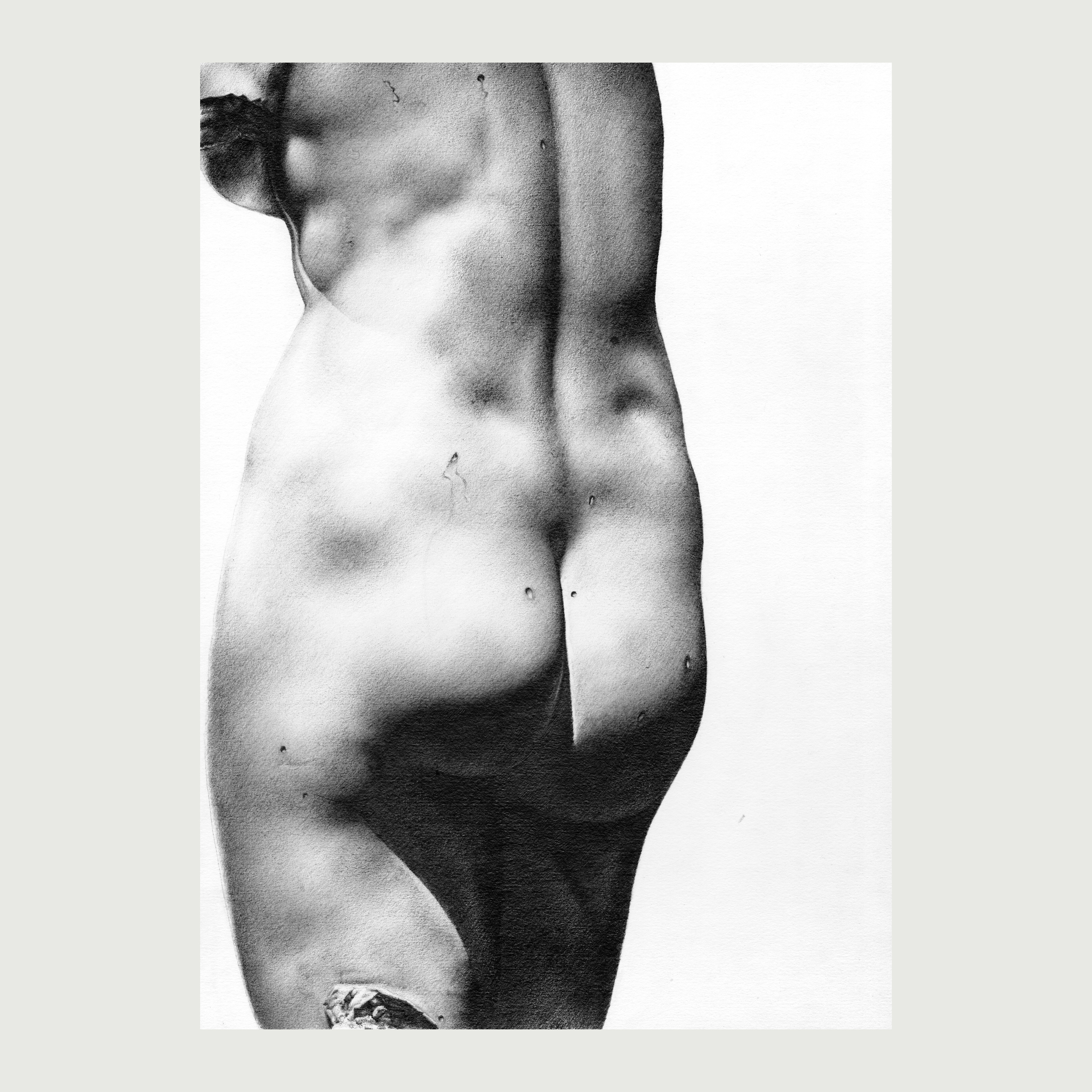 Collins' intimate portrait of Aphrodite, the ancient Greek goddess of love, beauty and fertility, marks an inflection point in his artistic trajectory. It is Collins' final, major work from his youth, having been completed when he was only nineteen. The drawing is the culmination of Collins' youthful focus on graphite, photorealism and studies of classical masterpieces. It is also the final such piece created before Collins transitioned his practice to painting and what has become his signature pop subject matter and aesthetic.